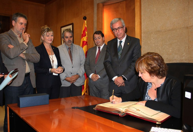 La consellera ha signat al Llibre d’Honor de l’Ajuntament de Tarragona a l’alcaldia. Durant la reunió posterior, la consellera Borràs i l’alcalde Ballesteros han repassat temes com la situació de la presó, el transport i la Ciutat Judicial.