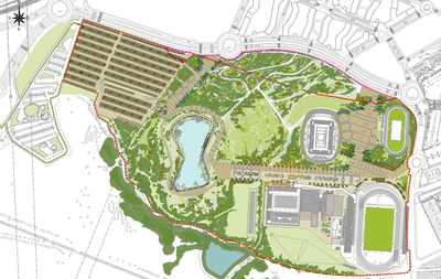 - El segon projecte executiu inclourà el moviment de terres de la zona del llac i de la zona verda, paviments, enllumenat públic, llac, jardineria, mobiliari urbà i reg.