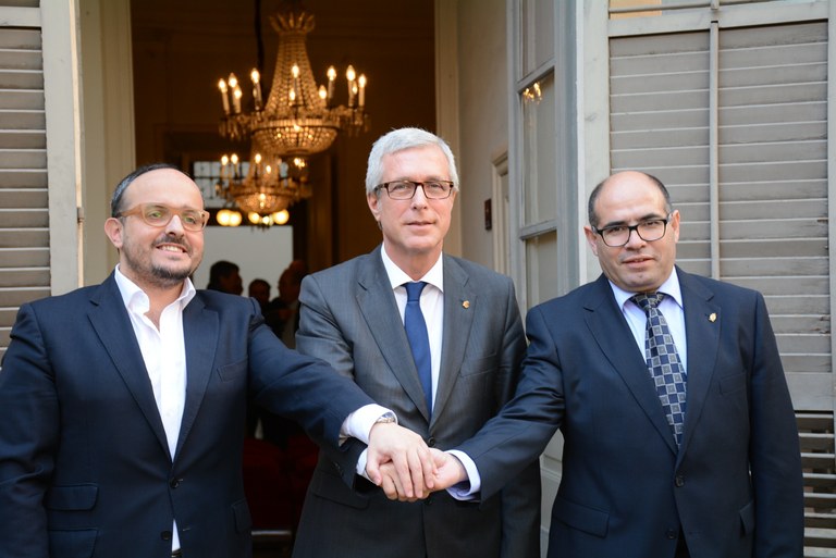 L’alcalde de Tarragona, Josep Fèlix Ballesteros, el portaveu del Partit Popular i nou primer tinent d’alcalde i coordinador de Presidència i Estratègies de Ciutat, Alejandro Fernández, i el portaveu d’Unió Democràtica de Catalunya i nou tinent d’alcalde de Cultura, Josep Maria Prats, han signat aquest migdia un Acord de Govern a la Casa Canals. Amb el títol "Tarragona és futur" els tres representants polítics de l’Ajuntament de Tarragona han coincidit en el fet que “Tarragona necessita estabilitat política. Hem pactat per Tarragona, un acord que servirà per sumar”.