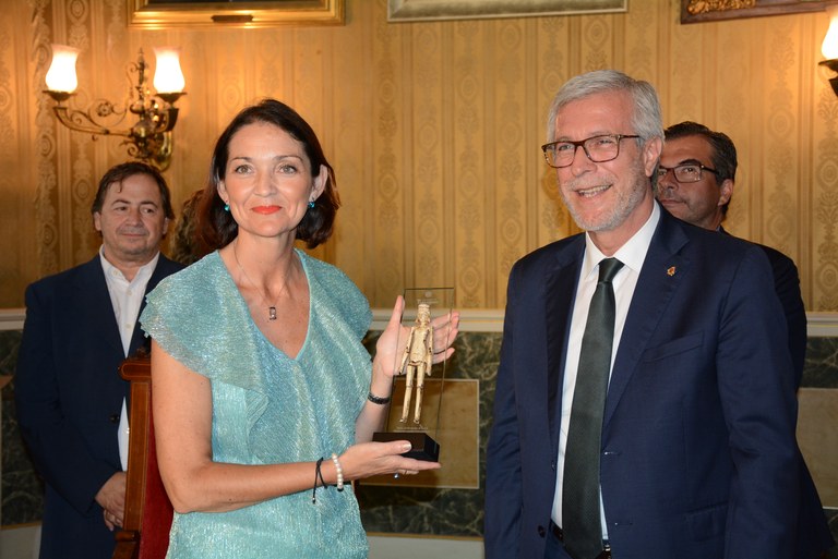 La ministra ha signat el Llibre d'Honor del consistori i ha rebut una reproducció de la Nina d'Ivori i de la mascota dels Jocs Mediterranis, Tarracus, de la mà de l'alcalde de la ciutat, Josep Fèlix Ballesteros.