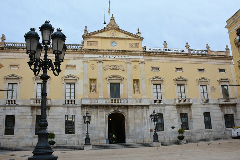 Avui, a les 8 del matí, l’Ajuntament de Tarragona ha tornat a penjar a la façana del Palau Municipal la pancarta amb el lema “Llibertat presos polítics!”.