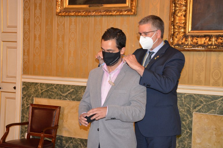 L’alcalde de Tarragona, Pau Ricomà, ha presidit l’acte i li ha atorgat al nou conseller el botó amb l’escut de l’Ajuntament i la medalla.