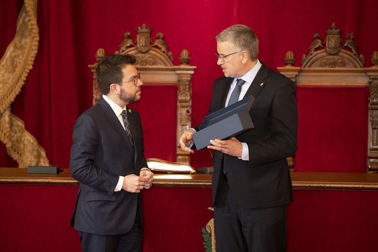 El president de la Generalitat ha realitzat aquest divendres una visita institucional a l'Ajuntament, on ha signat el Llibre d'Honor de la ciutat
