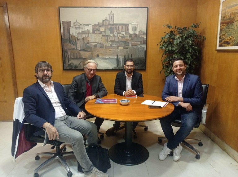 El president d’ImpulsCatSud Regió del Coneixement, Miquel Maria Aragonès, acompanyat per Jordi Colet, director general de l’empresa Proacit, associada a l’entitat, han presentat aquest matí els projectes d’ImpulsCatSud a l’alcalde de Tarragona, Rubén Viñuales, que ha assistit a la reunió acompanyat de Nacho Garcia, quart tinent d’alcalde del consistori tarragoní.
