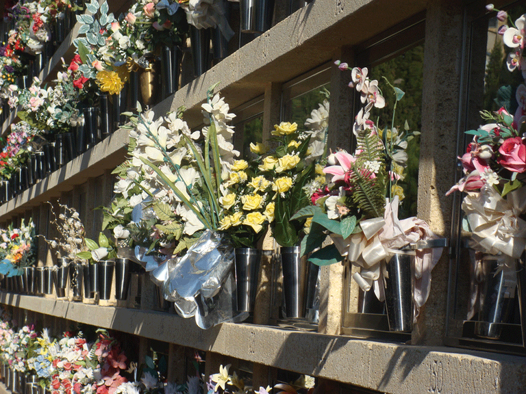- L’esplanada d’aparcament del davant de la porta principal del Cementiri quedarà reservada per a les parades de venda de flors,i com a zona d'aparcament per a persones amb discapacitat, així com per a l'aturada de taxis i vehicles per a la descàrrega de passatgers d’avançada edat o amb mobilitat reduïda.