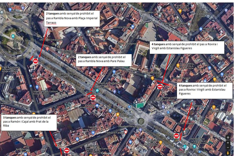 El talls i desviaments de trànsit es duran a terme en funció de les necessitats de cada moment i s’anirà permetent en alguns períodes la circulació als dos eixos de la rotonda, de forma alternativa. Per la tarda, els talls tindran una major permanència en el temps. Així doncs, es recomana fer ús d’itineraris alternatius per accedir a la Rambla Nova o per creuar la ciutat sense fer ús d’aquesta via.
