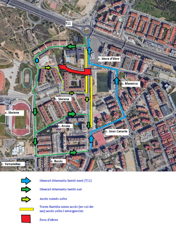 Aquests treballs, emmarcats en el projecte del PP10, comportaran afectacions com el tall de trànsit de la Rambla de Ponent, del tram del carrer Riu Anoia al carrer Riu Siurana, establint itineraris alternatius, així com prohibicions d’aparcar, entre d’altres; que estaran degudament senyalitzats tant per als veïns com per als vehicles.