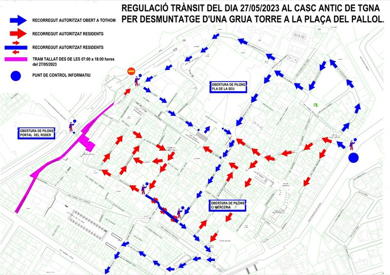 Pel que fa al trànsit, doncs, es produiran talls puntuals de circulació, establerts pels encarregats de l’obra, i s’informarà als vehicles de la vigència de la restricció i els passos alternatius als diferents punts de la Part Alta (adjuntem plànol).
