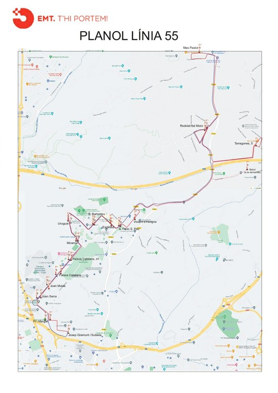 El proper dilluns, 1 de maig, s’implementa la primera fase de la reordenació de la L55 de l’Empresa Municipal de Transports de Tarragona (EMT). La reordenació, que s’impulsa a partir d’una petició veïnal, ha estat impulsada conjuntament pels serveis tècnics de l'EMT i representants veïnals de Mas d’en Pastor, Rodolat del Moro, Tarragona 2 i Sant Pere i Sant Pau per satisfer les necessitats de connexió de Sant Pere i Sant Pau amb el seu àmbit d’influència.
