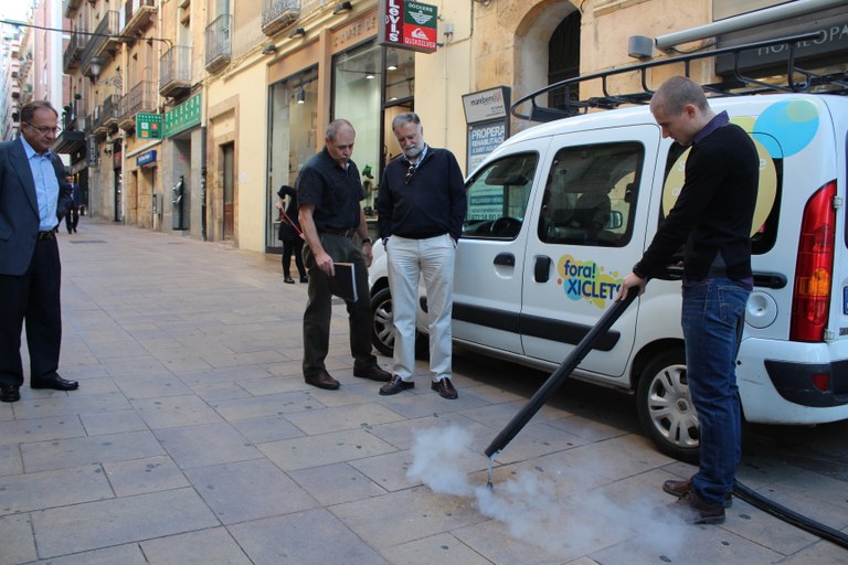 Aquest matí s’ha presentat la màquina lleva xiclets, específicament dissenyada per eliminar i netejar les restes de xiclets a la via pública i al mobiliari urbà. El conseller de Neteja Pública de l’Ajuntament de Tarragona, Joan Sanahujes, ha assistit a la demostració del funcionament i eficàcia d’aquesta màquina que utilitza un mètode molt efectiu i totalment ecològic per fer la neteja dels carrers.