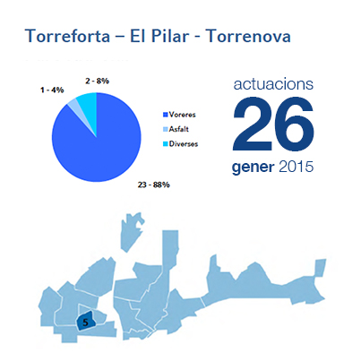 Al gener, s'han realitzat 26 actuacions de manteniment a la via pública a la zona de Torreforta, El Pilar i Torrenova.