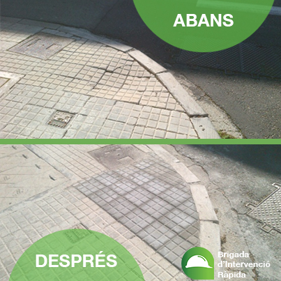 La vorera del C/Josep Maria Folch i Torres, a la zona d’estacionament enfront concesionari Renault de Les Gavarres, ha quedat reparada gràcies a l'actuació de la Brigada d'Intervenció Ràpida.
