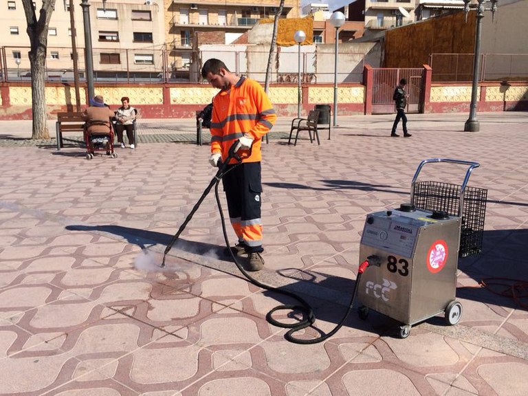 El servei de neteja de l’Ajuntament va dedicar 20 hores per treure els xiclets enganxats a l’enrajolat del carrer Prat de la Riba. Durant aquesta jornada es van retirar uns 2.600 xiclets de la via pública.
