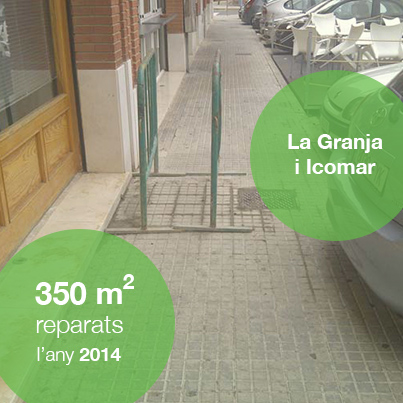 - Entre la vall de l’Arrabassada, el Miracle i la Via Augusta s’han reparat 430,72 m2 durant l’any 2014