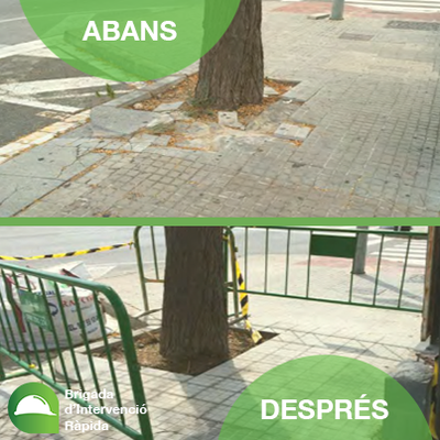 >Reparació de paviment aixecat per arrels, a la vorera del c/ Pi I Maragall