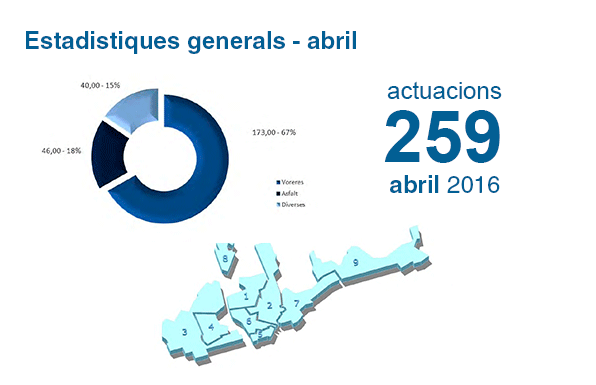 En aquest article podreu trobar el nombre d'intervencions fetes sobre asfalt, voreres o altres superfícies, així com les dades de procedència de les alertes rebudes durant el mes d'abril de 2016.