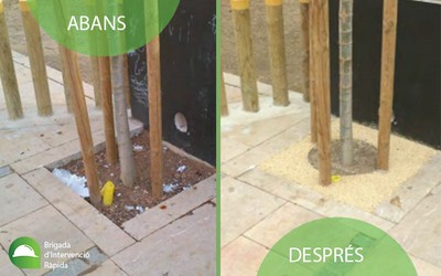 >Reparació de vorera amb paviment aixecat per arrels al carrer Arquitecte Jujol.