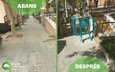 >Substitució de rajoles, amb mobilitat, a la vorera del carrer Pere Martell