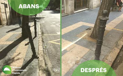 >Recol·locació de pilona, que ha estat colpejada, a la Rambla Vella