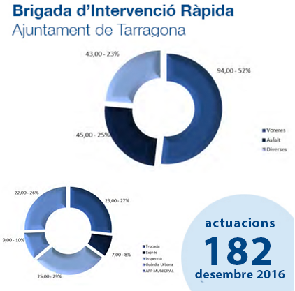 Durant el mes de desembre la Brigada d'Intervenció Ràpida ha dut a terme un total de 182 actuacions a tota la ciutat, tant al centre com als barris. La majoria d'aquestes intervencions s'han resolt sobre voreres.
