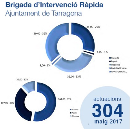 Durant el mes de maig la Brigada d'Intervenció Ràpida ha dut a terme un total de 304 actuacions a tota la ciutat, tant al centre com als barris. La majoria d'aquestes intervencions s'han resolt sobre voreres.