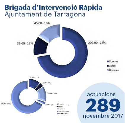 Durant el mes de novembre de 2017 la Brigada d'Intervenció Ràpida ha dut a terme un total de 289 actuacions a tota la ciutat, tant al centre com als barris. La majoria d'aquestes intervencions s'han resolt sobre voreres.