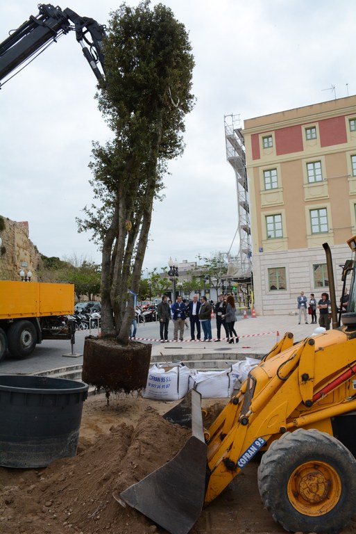 Aquesta alzina substitueix la mèlia que va caure per la tempesta del passat mes d'octubre. Un exemplar que estava sota vigilància dels serveis tècnics de la Brigada Municipal perquè presentava molts problemes provocats per l'envelliment. "No es va poder salvar perquè estava completament foradada per dins", explica el conseller d'Espais Públics José Luis Martín.