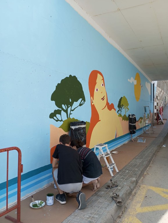 Durant aquest cap de setmana, l’artista Àngel Sauret s’ha encarregat d’il·lustrar les parets de la infraestructura amb l’objectiu de dignificar el túnel d’accés a la platja i en general de tota la zona.