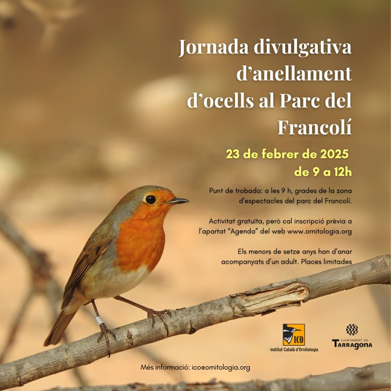 La cita, oberta a tota la ciutadania, està organitzada per l'Institut Català d'Ornitologia i la conselleria de Medi Ambient de l’Ajuntament de Tarragona. Durant l’activitat s’explicarà què és l’anellament, com es duu a terme, per a què serveix i les tècniques bàsiques d’identificació, manipulació dels ocells i presa de dades biomètriques.