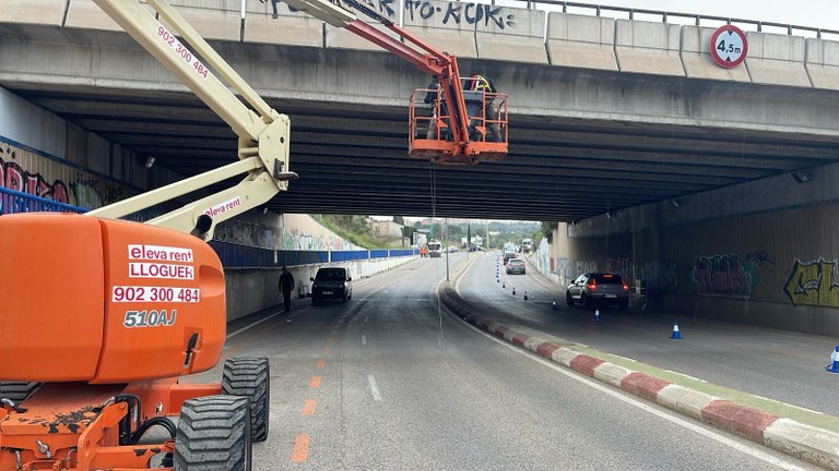 S’instal·la una xarxa preventiva per evitar l’estada i nidificació de coloms al pont del cementiri