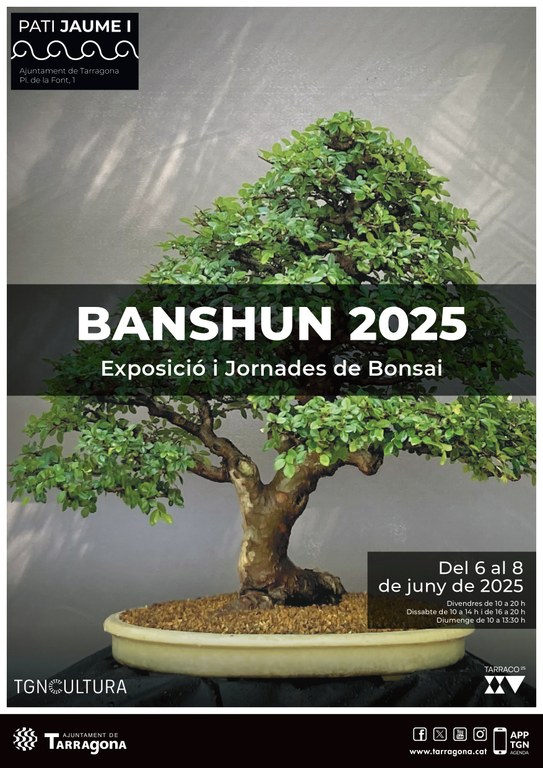 Tarragona rep aquest divendres dia 6 de juny l’exposició i jornades de bonsai ‘Banshun 2025’ al Pati Jaume I. La ciutadania podrà gaudir d’un cap de setmana ple d’activitats relacionades amb el món del bonsai, organitzat per l’Ajuntament de Tarragona i en col·laboració amb l’associació Tarragona Bonsai.