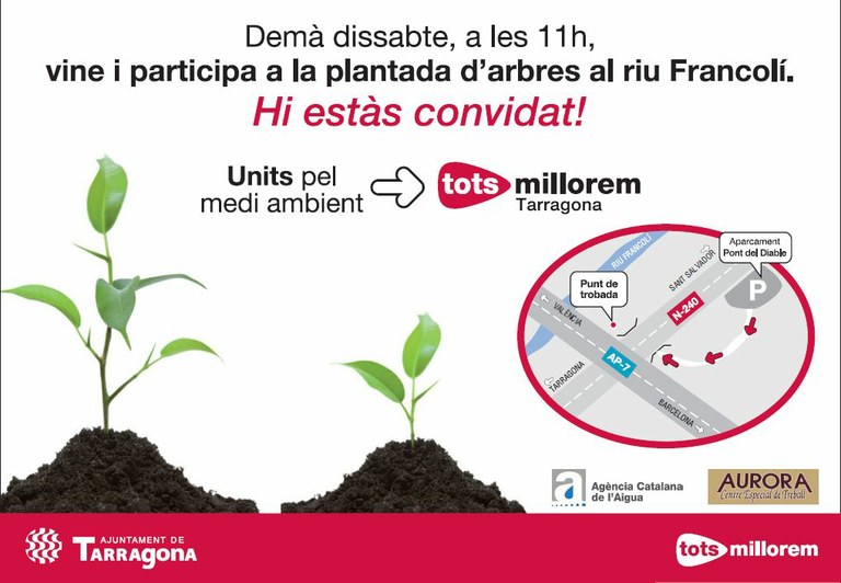 L’Ajuntament de Tarragona convoca la ciutadania a la plantada d’arbres al riu Francolí que es realitzarà el dissabte 19 de febrer