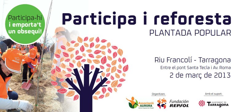 El dissabte 2 de març, la Fundación Repsol i l’Associació Aurora, amb el suport de l’Ajuntament de Tarragona, organitzen una plantada popular al riu Francolí, entre el pont de Santa Tecla i l’Avinguda Roma.
