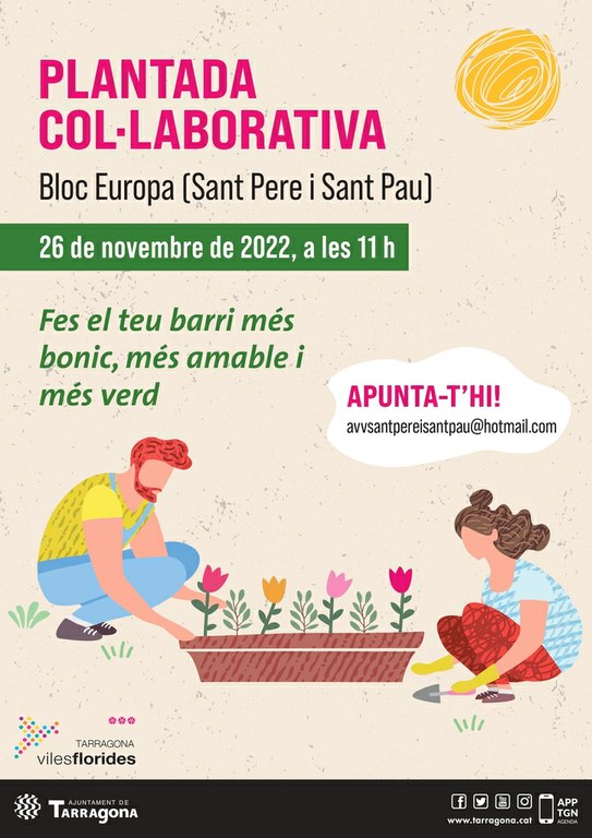 Tornen les plantades col·laboratives aquest cap de setmana i el vinent. D’una banda a Sant Pere i Sant Pau i de l’altra a la plaça dels Infants, a la Part Baixa de la ciutat. Des de la conselleria de Parcs i Jardins es reprèn aquesta activitat amb voluntat de millorar els espais verds i dins el projecte de Viles Florides en el que l’Ajuntament hi participa i que ja en porta fetes més de vint a diferents indrets i sempre amb la participació de veïns i veïnes i nens i nenes de la ciutat.