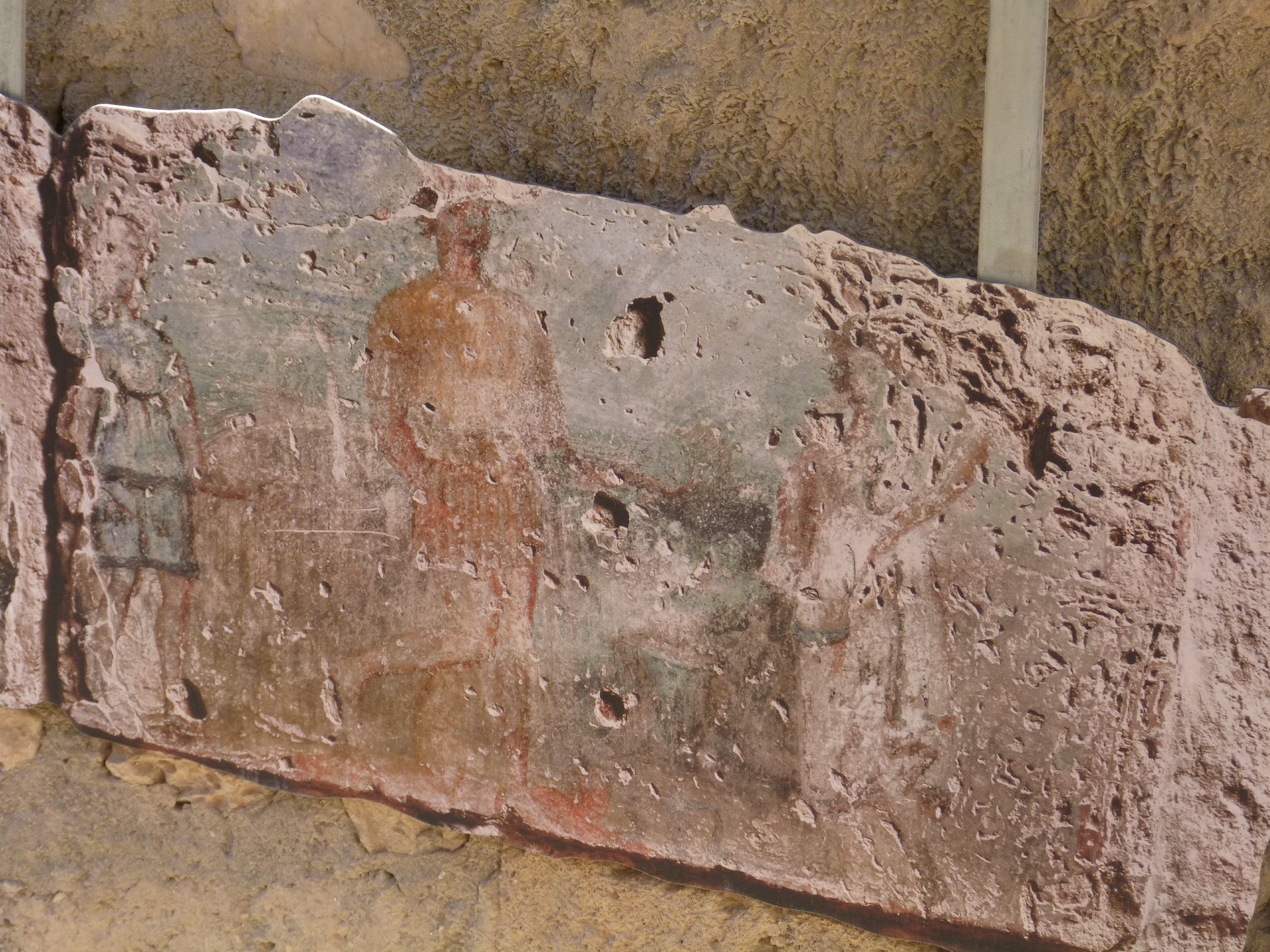2. En un dels fossars, més al Nord, es conserva una interessant pintura que és una ofrena a Nèmesi, la patrona dels gladiadors (reproducció, l'original és al museu Arqueològic).
