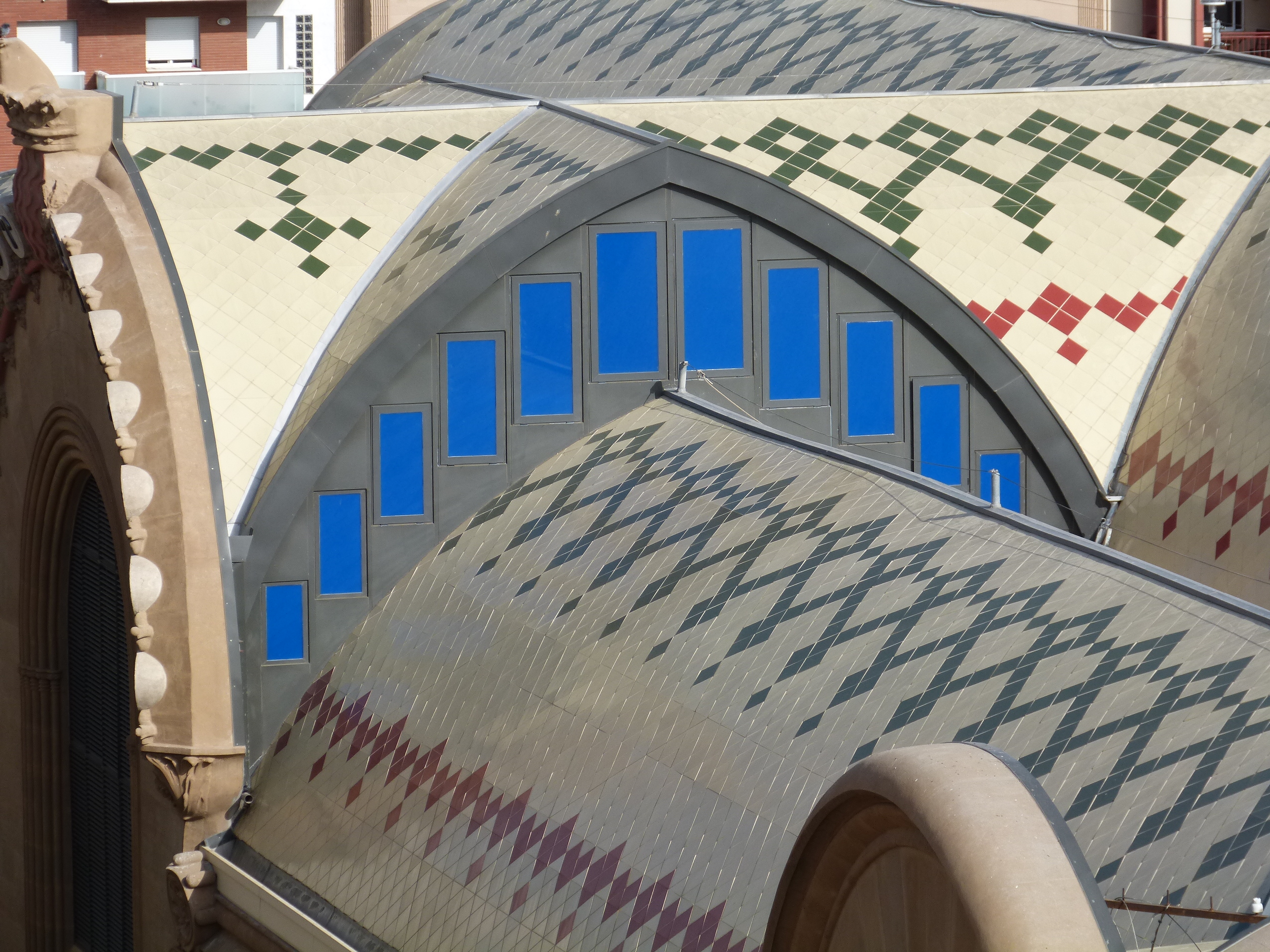 - Imatges 3 i 4. Detall de les cobertes de ceràmiques de colors i interior de la coberta, després de la restauració de 2017.
