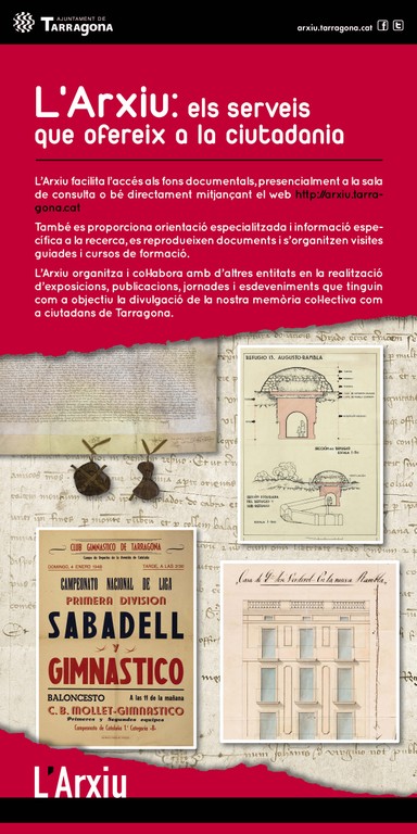 L’exposició “L’Arxiu: nou equipament cultural de Tarragona” té com a objectiu difondre les funcions, els serveis, els fons documentals i les activitats que es desenvolupen a l’Arxiu, així com les diferents seccions que l'integren.