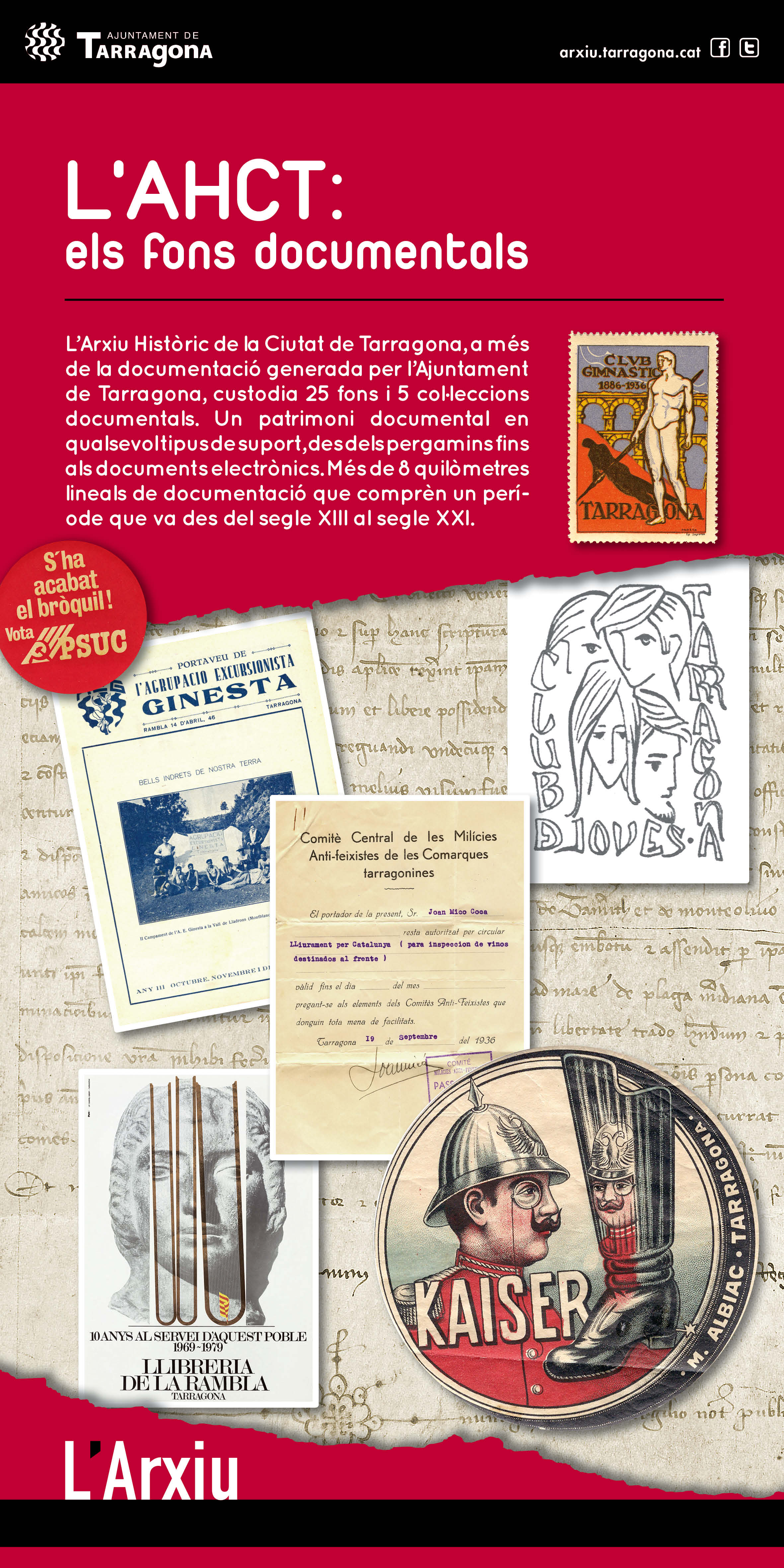 Esteu aquí: Inici Patrimoni Arxiu municipal Difusió Efemèrides i commemoracions Exposicions L'Arxiu: nou equipament cultural de Tarragona 3. L'AHCT: els fons documentals