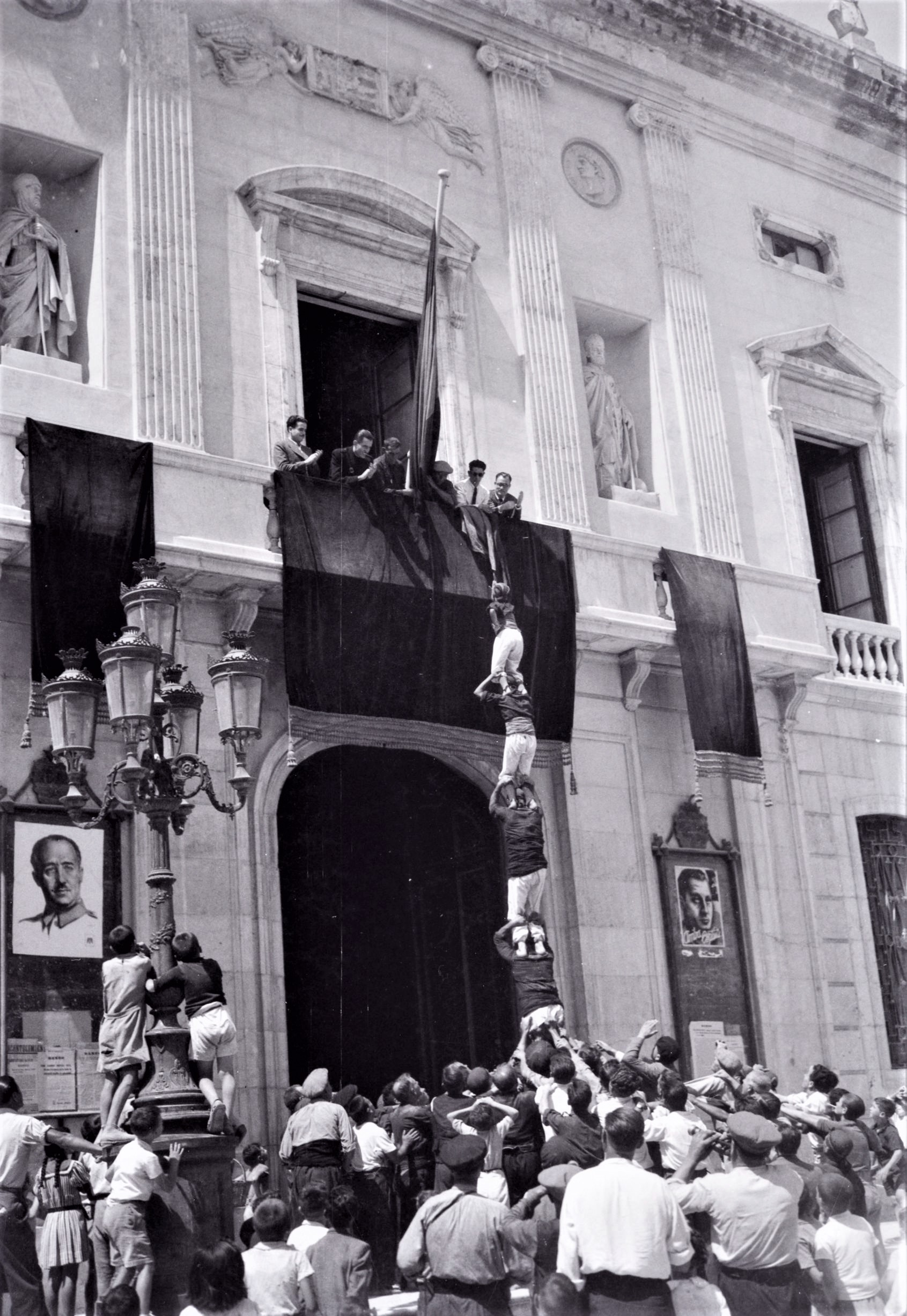 Pilar de cinc dels Xiquets de Tarragona davant la façana de l’Ajuntament de Tarragona