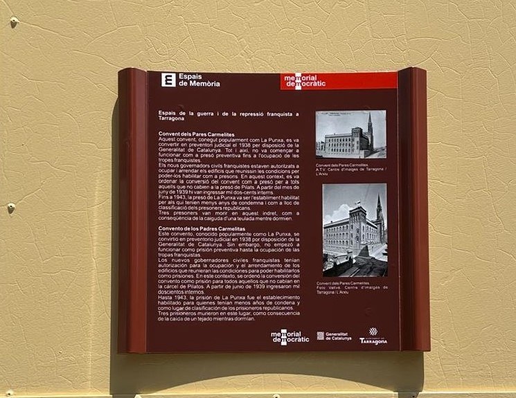 L’Ajuntament de Tarragona, a través de la conselleria de Memòria Democràtica, ha finalitzat la tasca de senyalització dels espais de la guerra i de la repressió franquista a Tarragona, iniciada el 2023. La ciutat compta amb tres noves plaques informatives situades al Convent de les Oblates, al Convent dels Pares Carmelites i a la Casa de la Punxa; que s’afegeixen a les quatre ja instal·lades prèviament a la Presó Provincial, la Muntanya de l’Oliva, la Presó de Pilats i l’Antiga Audiència.