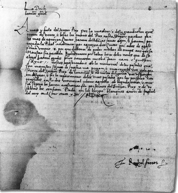Signatura del document de retorn del fons municipal (S.XIII-XVIII) a L'Arxiu