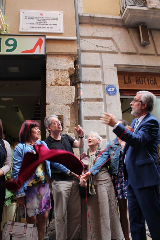 L’ alcalde de Tarragona, Josep Fèlix Ballesteros, ha obert aquesta tarda els actes en homenatge a l’exalcalde i historiador Josep Maria Recasens. L’alcalde ha descobert una placa a la façana de la casa on va néixer Recasens, al número 19 del carrer Major. A continuació, ha inaugurat a l’Antic Ajuntament l’ exposició “Passió per la ciutat: Josep M. Recasens i Comes (1918-2013)”, que repassa els seus anys com alcalde i que romandrà oberta fins el 14 d’agost. Després aquesta exposició serà itinerant i es podrà visitar als diferents centres cívics de la ciutat: Bonavista, Sant Pere i Sant Pau, Torreforta, Sant Salvador i la Part Alta. Als actes hi han assistit familiars de Josep M. Recasens.