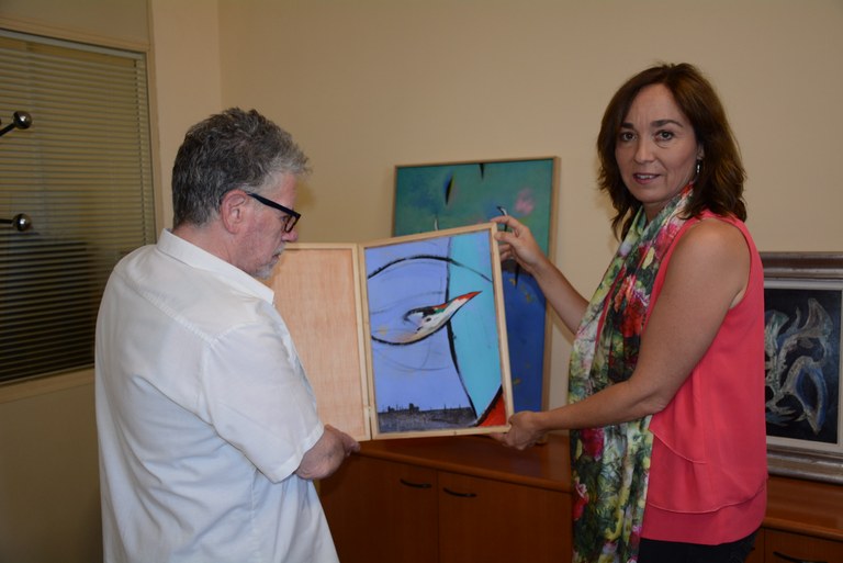 Aquest matí la consellera de Patrimoni, Begoña Floria, ha rebut l’artista de la ciutat Josep Maria Rosselló, que ha fet una donació de la seva obra al fons del Museu d’Història de la ciutat. La peça es titula L'ocell i ha estat creada enguany dins de la col·lecció A l’Atzar com a projecte d’El Teler de Llum amb motiu del centenari del dadaisme.