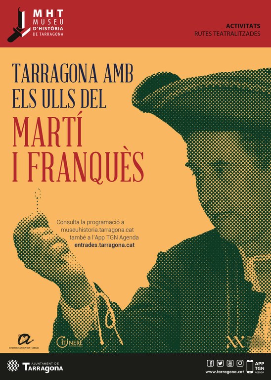 El Museu d’Història amplia el cicle Tarragona amb els ulls de..., de rutes teatralitzades a través de sorprenents personatges històrics de la ciutat i ho fa amb Antoni de Martí i Franquès, mentre continuen les de Lluís Pons d’Icart fins al 21 d’agost. Així, del 20 d’agost al 16 d’octubre, Martí i Franquès se situarà pels seus racons preferits de la ciutat i ens la farà conèixer millor.
