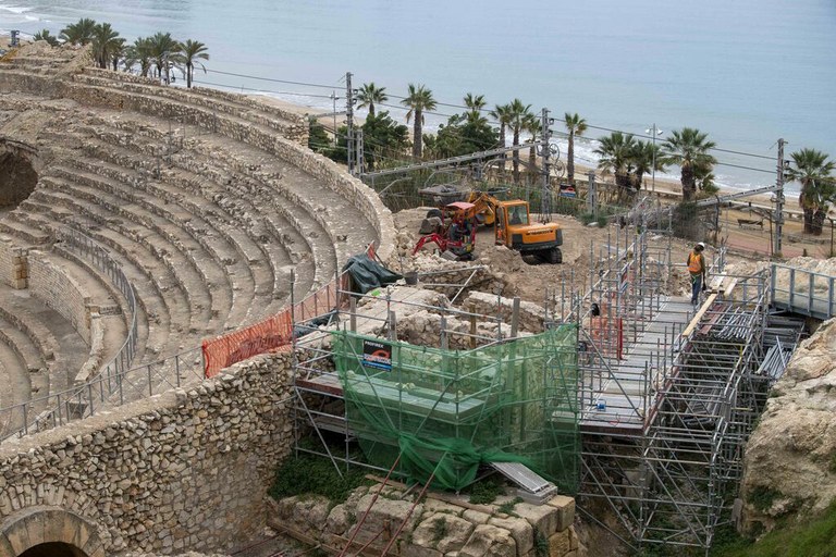 Després de dos mesos d’intervenció, que es preveu que s’allargui fins a finals d’any, l'evolució dels treballs ja es clarament visible, amb la rebaixa de fins a tres metres del que era la grada reconstruïda que estava en males condicions i que des del 2018 es manté apuntalada per una bastida. El conseller Pinedo ha destacat que aquests treballs van passar a ser una urgència amb motiu dels últims episodis de pluges i que “Per evitar que caigués l’estructura i fes malbé part amfiteatre que sí que és original, havíem d’actuar d’emergència”. La rebaixa del terreny pot arribar a ser de fins a 6 o 7 metres, tenint en compte sempre “la seguretat del monument i dels visitants”, ha apuntat el conseller, qui també ha dit que s'està fent tot amb màxima prudència i acordat amb totes les parts.