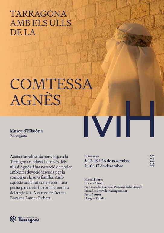 El cicle ‘Tarragona amb ulls de’ el protagonitza enguany una dona, la Comtessa Agnès, que va viure a la nostra ciutat en època medieval, concretament al segle XII. Agnès va ser la dona de Robert d’Aguiló, un normand guerrer, que va ser cridat per dur a terme l’ambiciós projecte de repoblació d’una Tarragona empobrida i buidada, que li va encomanar el Bisbe Oleguer.