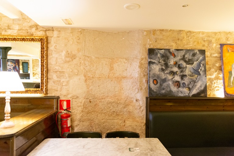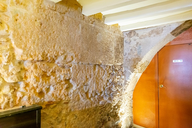 The premises occupied by Cappuccino are built in the space of two of the ancient vaults of the Circus, still standing with large visible parts of stone worked in the opus quadratum style on their side walls. The establishment’s interior has undergone many changes through the centuries, and a diverse range of modifications can still be observed. As the establishment occupies the ground floor of two houses built on the vaults of the Circus, the premises are divided into two parts that must have originally been independent vaults. These now serve the same purpose and are used as a dining room. The transition between both vaults can be easily appreciated, as they are joined through a rough opening surely made around the 16th to 18th centuries. At the back of the premises, there is a pointed Gothic arch of which only a third can be seen, which reinforces the certainty that these vaults have been occupied for centuries. The premises also hide some old openings that have been closed again sometime in the past, probably during the Early Modern era, in addition to those still in use.