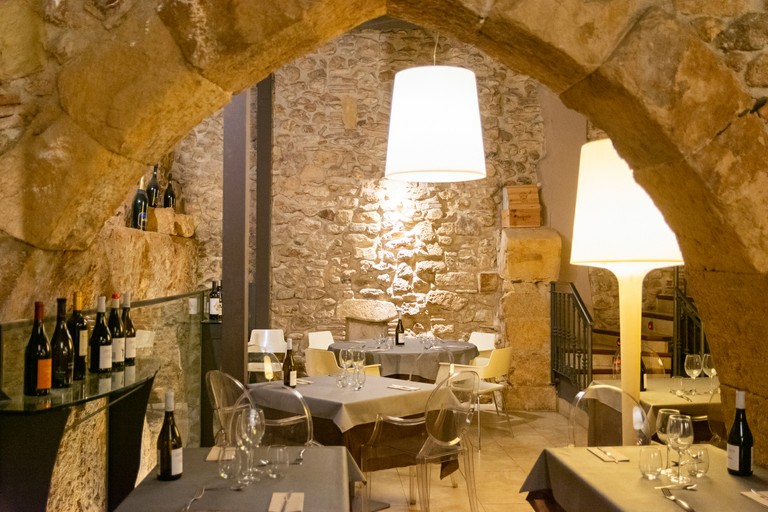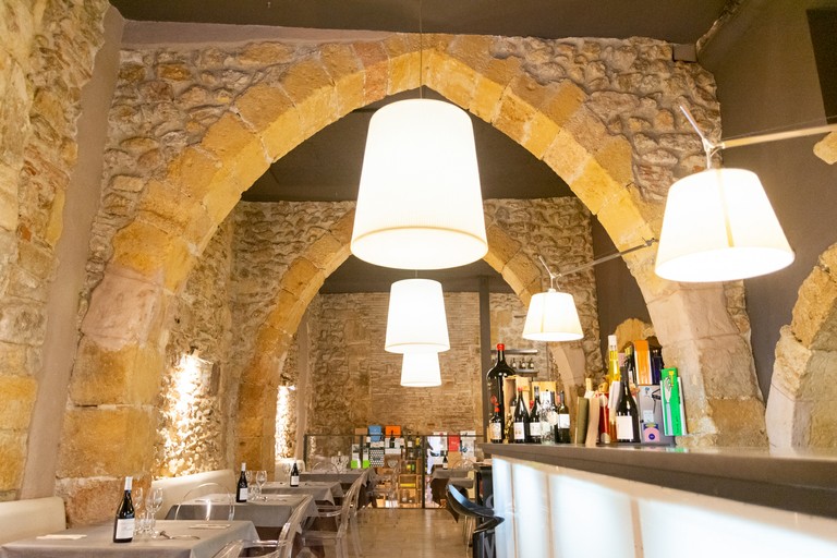 Restaurant with archaeological remains belonging to the provincial forum representation square and with a network of gothic arches and medieval walls.41.1182493 1.2556374