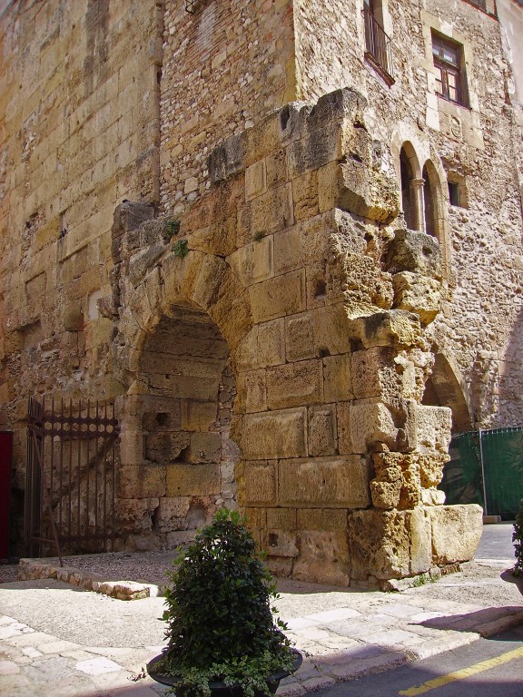 Preserva en el seu interior diverses restes arqueològiques d’època romana integrades en el conjunt: un podi, un porticat de 15 metres d'amplada i el mur de tancament occidental de la plaça de representació del fòrum provincial decorat amb pilastres dòriques de 12 metres. L’edifici que veiem en l’actualitat i el seu element més distintiu, la volta, daten de finals de l’època medieval i inicis de l’època moderna, ja que el conjunt pren la forma actual després de la instal·lació del convent de Sant Domènec a la plaça del Pallol l'any 1462.