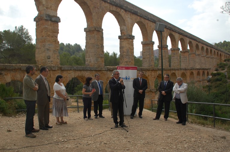 L’ alcalde de Tarragona, Josep Fèlix Ballesteros, la tinent d’alcalde de Cultura i Patrimoni, Carme Crespo, el vicepresident d’Hispania Nostra-Banco Santander, Carlos de Morenés y Mariátegui, així com el representant també d’aquesta institució, Manuel Gracia Rivas, han realitzat aquest matí un acte de reconeixement a les tasques de recuperació de l’aqüeducte romà del Pont del Diable i el seu entorn, en el qual hi ha participat en els darrers anys quinze anys, institucions, empreses, escoles tallers, tècnics municipals, etc. i que ha merescut el Primer Premi d’Hispania Nostra-Banco de Santander.